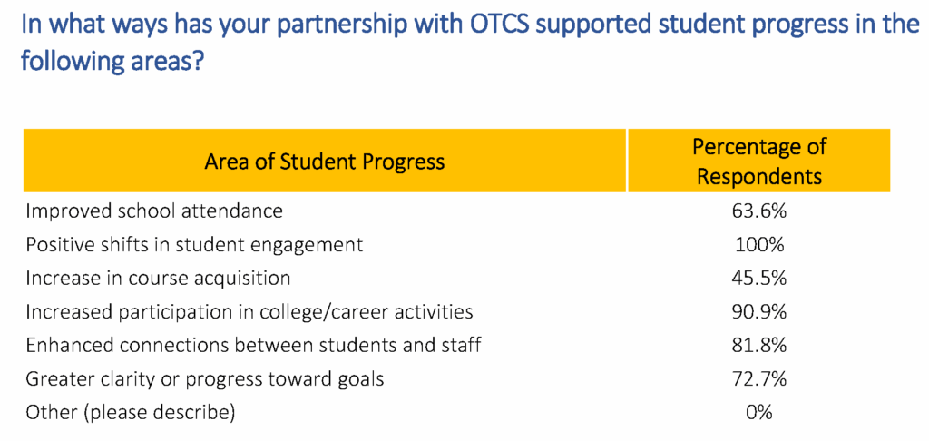 - 82% of respondents shared an increase in connections made between students and school/community/employment partners